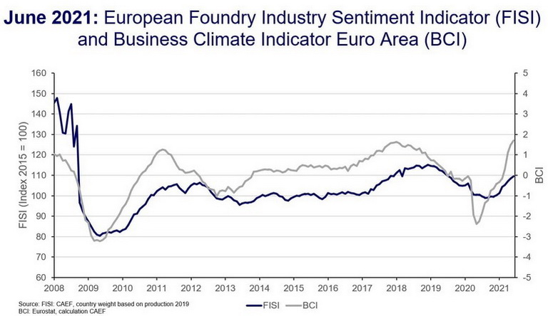 At the same time, the Business Climate Indicator (BCI) also continues to improve for the 13th consecutive month, reaching a new all-time high in June. The increase of 0.22 points raises the index to its record level of 1.71 points. The current business situation is assessed as overall positive due to the excellent order situation. Therefore, rising sales prices and high employment are expected for the coming months.