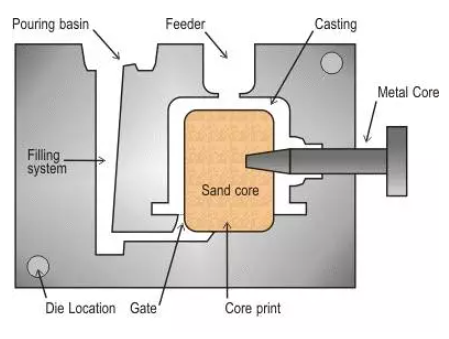 金屬型鑄造:指液態(tài)金屬在重力作用下充填金屬鑄型并在型中冷卻凝固而獲得鑄件的一種成型方法。