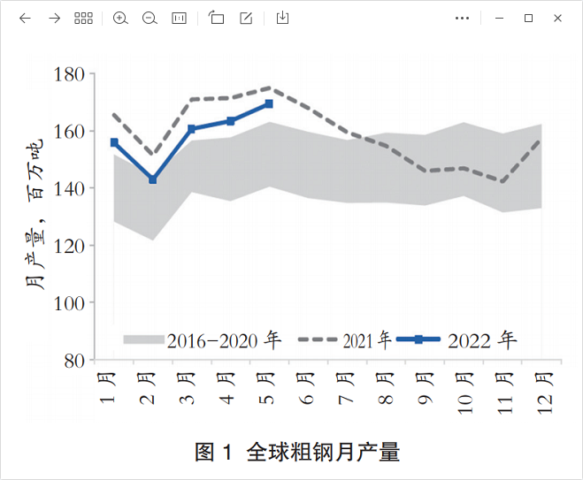 截至2022年5月,今年全球粗鋼產(chǎn)量約為7.92億噸。這一數(shù)據(jù)比2021年同期低5.0%,但比2016年至2020年期間的平均產(chǎn)量高出2.4%。