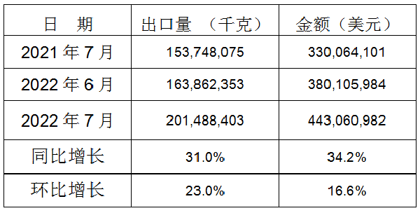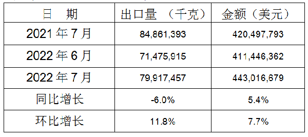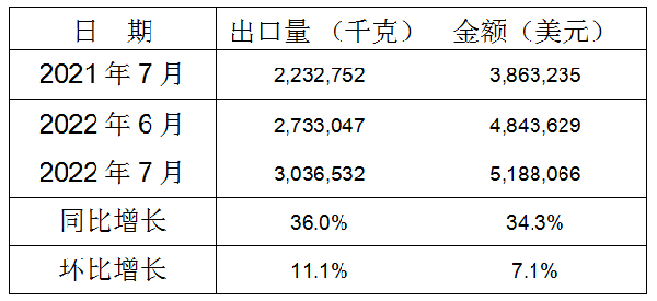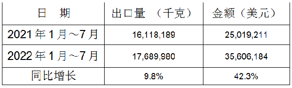 1-7月鑄模及鑄芯用粘合劑共計(jì)出口1.7萬(wàn)噸,同比增長(zhǎng)9.8%。其中:7月份出口0.3萬(wàn)噸,同比增長(zhǎng)36.0%,環(huán)比增長(zhǎng)11.1%,見表11和表12。