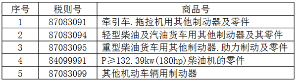 表 4:5個(gè)稅則號(hào)汽車零部件