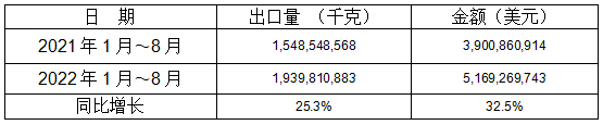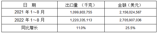 1-8月13個(gè)稅號黑色鑄件合計(jì)出口122萬噸,同比增長11.0%。其中:8月份出口17.1萬噸,同比增長23.0%,環(huán)比增長-15.0%,見表2和表3;