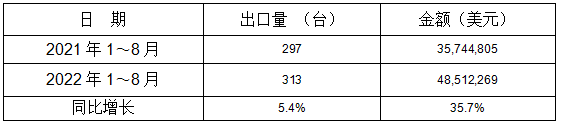1-8月冷室壓鑄機(jī)共計(jì)出口313臺,同比增長5.4%。其中:8月份出口34臺,同比增長-28.0%,環(huán)比增長-37.0%,見表9和表10;